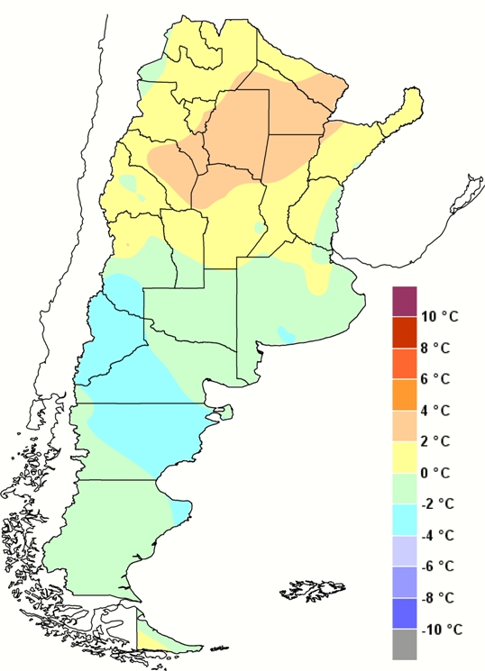 Desde el lunes hasta el viernes, el ambiente se mantuvo caluroso en todo el norte del país, con mínimas de entre 20 y 25°C, para luego caer durante el fin de semana a valores de entre 8 y 14°C. Las máximas extremas de la semana oscilaron entre lo 36 y 44°C, para luego caer durante el fin de semana a 20/30°C. Algunas localidades estuvieron bastante cerca de sus récords de mínimas navideñas y en el noroeste de la Patagonia las mínimas fueron bajo cero. Los próximos días serán bastante calurosos, con temperatura en franco ascenso, sin alivio dada la ausencia de sistemas de mal tiempo. Hacia el fin de semana se espera que las máximas ronden entre los 32 y 38°C en le centro, 36 a 40°C en el norte.