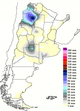 En los próximos tres días se mantendría el mismo patrón de precipitaciones: lluvias en Cuyo, noroeste argentino, norte de Río Negro y sudoeste de Buenos Aires. Entre el jueves y viernes un débil frente frío hará su ingreso y se podrían registrar algunas lluvias aisladas en las regiones pampeana y Cuyo. Existe la posibilidad de que el ambiente se mantenga inestable y se desarrollen lluvias y tormentas entre viernes y domingo en el norte de la región pampeana, especialmente en las zonas serranas de San Luis y Córdoba. Mientras tanto en el noreste del país se mantendrán condiciones inestables entre jueves y sábado, con lluvias y tormentas.