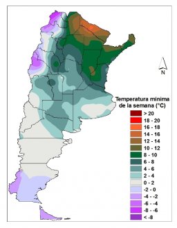Luego del ingreso al centro del país de una débil masa de aire frío en las últimas horas del fin de semana, se espera que el ambiente se mantenga templado hasta el jueves. Para el viernes se espera el ingreso de una masa de aire frío más importante, que generaría un descenso de temperatura general en el centro y norte del país. Es posible que en Buenos Aires y La Pampa haya heladas asociadas a este cambio en el patrón del tiempo.