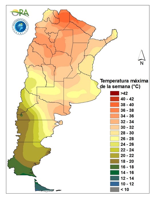 Luego de varios días de precipitaciones en Córdoba, Santa Fe, Entre Ríos, norte de Buenos Aires y de La Pampa, los acumulados semanales rondaron los 50-100mm. Se registraron tormentas intensas, con abundante caída de agua, viento intenso y granizo. Entre lunes y jueves hubo precipitaciones en el noreste argentino, con montos acumulados de 100-170mm, en especial en Misiones. En el noroeste del país, las lluvias afectaron al sector oriental, con totales semanales de 10-30mm.