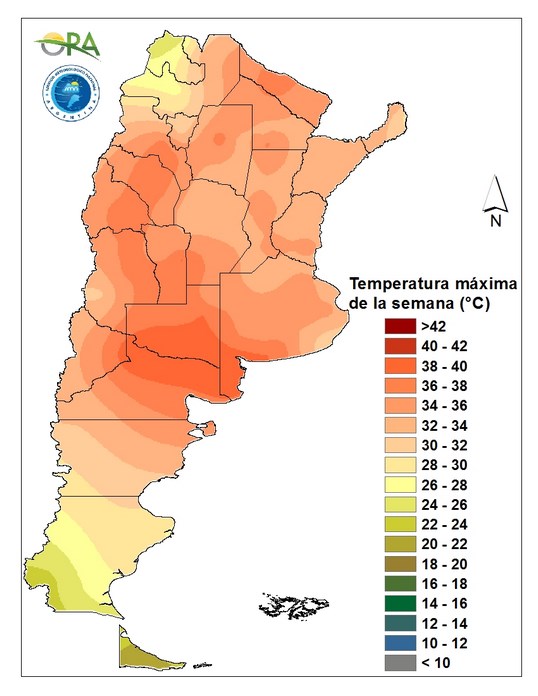 Se prevén temperaturas superiores a lo normal en la mayor parte del territorio argentino, principalmente en el centro y norte del país. Debido al establecimiento y persistencia de una zona de alta presión en el centro norte del país las máximas se mantendrán altas en toda la región con posibilidad en algunos casos de darse olas de calor (Informe especial del SMN: https://www.smn.gob.ar/olacalor). Entre sábado y domingo podría ingresar una zona de baja presión desde Patagonia en el centro-sur del país, lo que traería algún descenso en las temperaturas a partir del lunes.