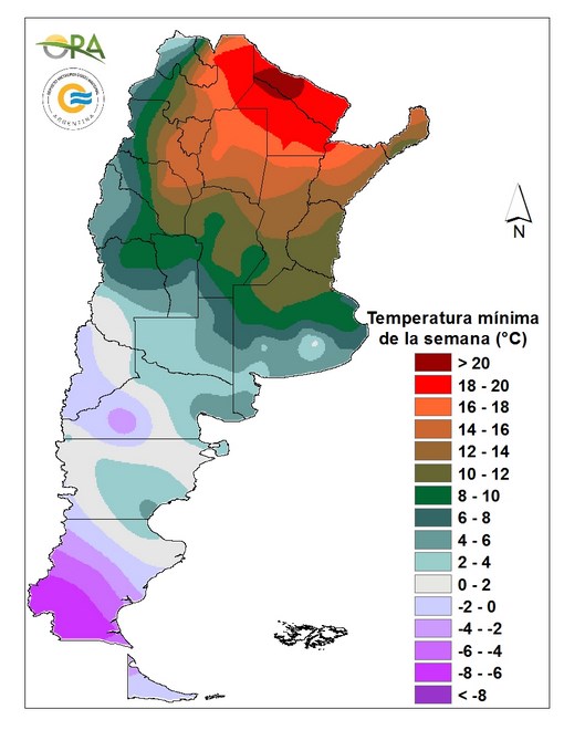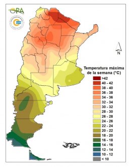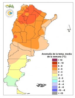 La temperatura media de la semana fue significativamente superior a la normal en todo el centro y norte del país.