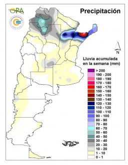 En localidades de Chaco, Corrientes y Misiones se acumularon más de 100mm en la semana. Los mayores reportes recibidos fueron: 202mm en Ituzaingó, 147mm en Posadas, 128mm en Santa Sylvina y 127mm en Villa Ángela.