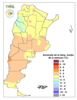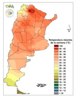 Esta semana las máximas superaron los 35°C en Cuyo, oeste de la región pampeana y NEA, lo cual es normal para la época del año.
