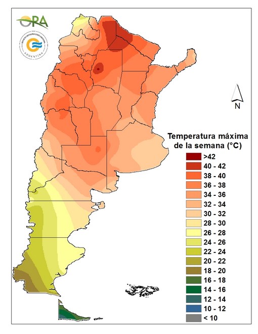 Esta semana se reportaron máximas de más de 40°C desde la estación Santiago del Estero capital (42.8°C), además de Rivadavia (42°C) y Tartagal (40.1°C), en Salta.