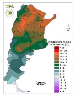 La mínima más baja reportada fue de -0.5°C en Río Grande (Ushuaia).