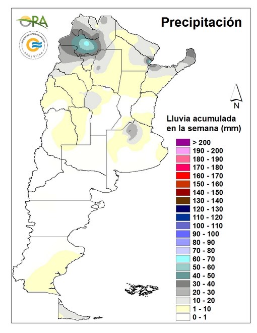 Los acumulados de la semana pasada resultaron menos intensos que los de las anteriores. Los mayores registros fueron de 67mm en Salta capital, 60mm en Las Palmas (Chaco) y 53mm en Metán (Salta).