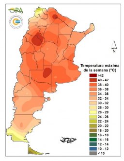 La máxima alcanzó los 41.5°C en las estaciones Chamical, La Rioja y Santa Rosa. En las provincias pampeanas, varias localidades alcanzaron los 39°C: Gral. Pico, Trenque Lauquen, Bahía Blanca, Buenos Aires y La Plata.