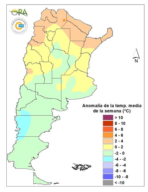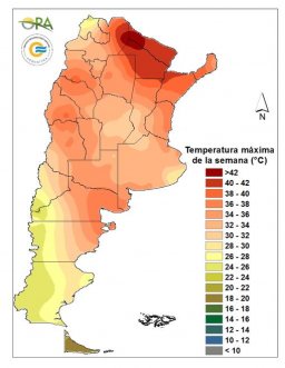 En Chaco, Formosa y este de Salta las máximas superaron los 40°C, con un máximo de 43°C en Rivadavia (Salta). Hubo registros inferiores a 3°C en la cordillera patagónica y Tierra del Fuego, con un mínimo de -2°C en Río Grande.