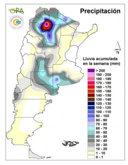 Se acumularon en la semana más de 100mm en localidades del NOA: 237mm en Metán, 138mm en Tucumán, 111mm en Santiago del Estero capital y 111mm en Jujuy capital.