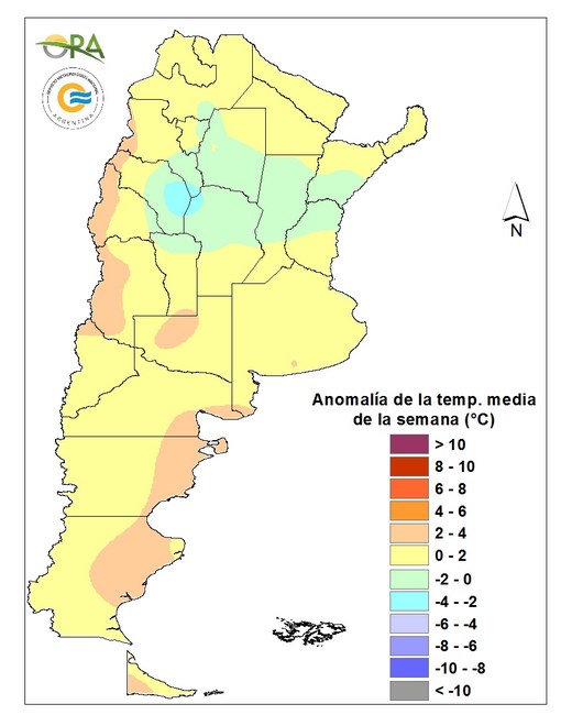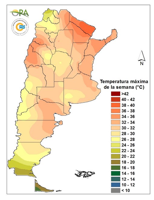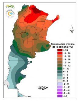 Las temperaturas de la semana no mostraron extremos marcadas. La máxima más alta reportada fue de 38.5°C en Formosa capital y la mínima de 1.3°C en El Calafate.