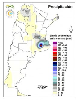 Se destacan las precipitaciones de 171mm en Azul y 152mm en Olavarría. Estas lluvias fueron muy locales y en estaciones de la región se registraron: 61mm en Las Flores y 55mm en Dolores.