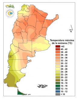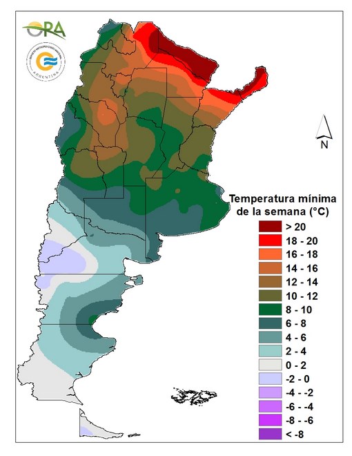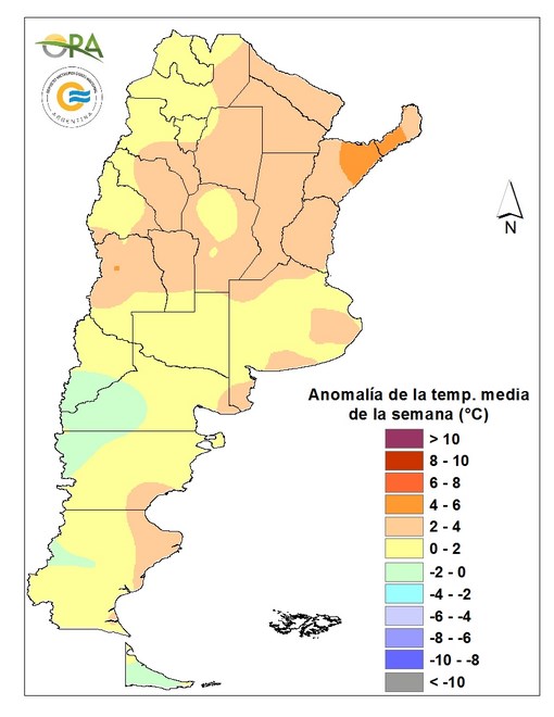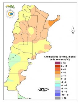En el este del NEA y gran parte del Litoral la temperatura media de la semana resultó significativamente superior a la normal.