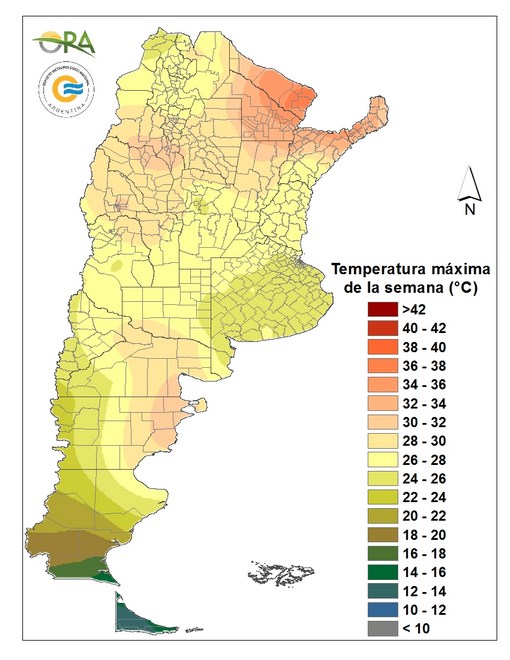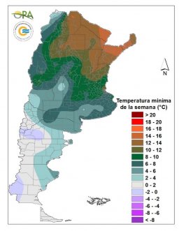 La temperatura superó los 35°C en la estación Formosa (36°C). Hubo heladas leves en algunas zonas patagónicas, con un mínimo registrado de -1.8°C en Maquinchao (Río Negro).
