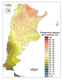 El único registro de máxima superior a 35°C fue reportado desde la provincia de Salta, con 35.5°C en Rivadavia. Se superaron los 30°C en la mayor parte del norte del país.
