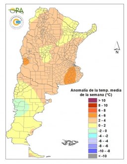 En la semana los mayores acumulados se dieron en el NEA, siendo Chaco la provincia con mayores acumulados, además de la franja central de La Pampa y centro-oeste de Buenos Aires.