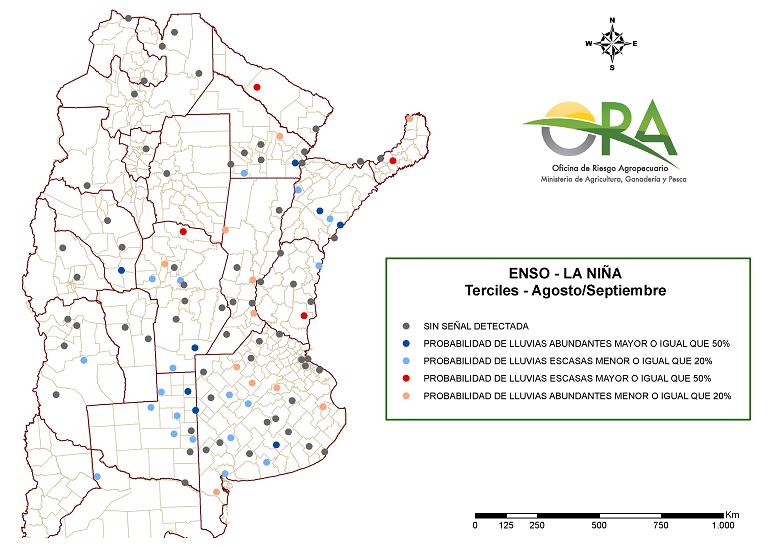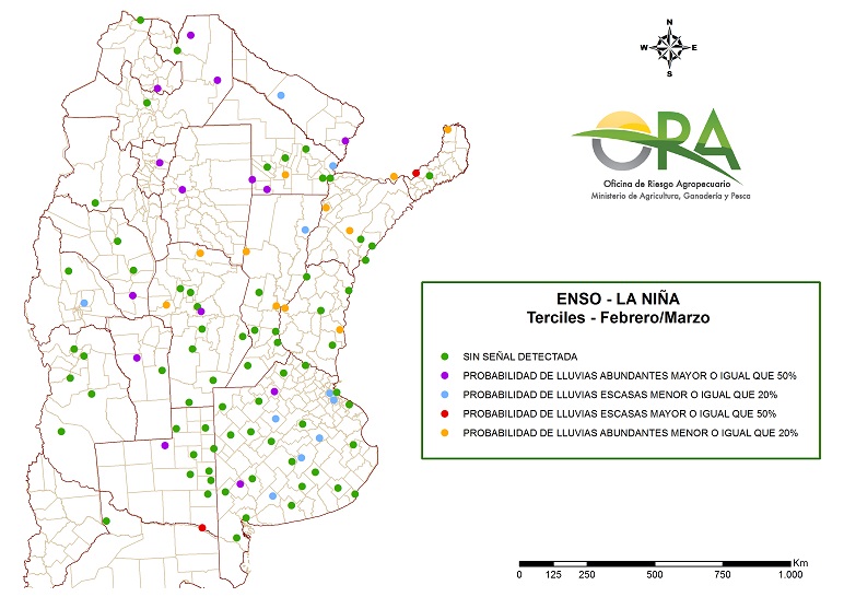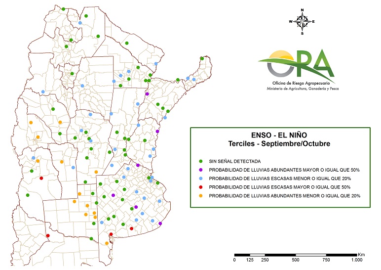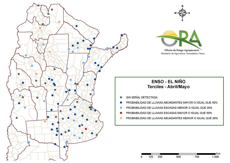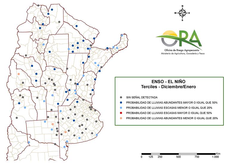 Los efectos del ENOS (El Niño – Oscilación del Sur) sobre la precipitación son más marcados en algunos meses y no se observan en otros. También existen zonas de la Argentina donde la señal ENOS se vuelve más importante, mientras que otras no presentan relación estadística entre su precipitación y los fenómenos El Niño o La Niña.